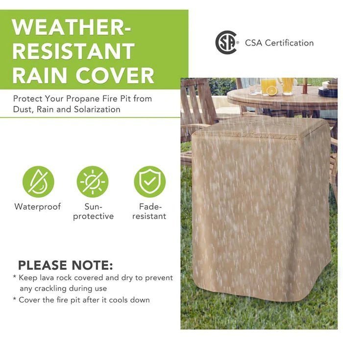 - Coordinate with Any Outdoor Space: This propane fire pit with adjustable foot pads fits well with uneven ground so that you can use it on the patio, deck, poolside, or camping. The waterproof PVC rain cover is sun-protective and fade-resistant, which protects the fire pit from dust, rain and solarization when not in use.