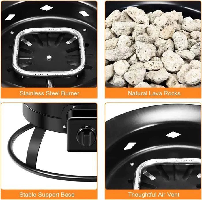- Environment-friendly & Safe Heating System: This fire pit uses environment-friendly propane fuel with CSA certificated, which ensures safety. It burns without smoke and sparks, providing warmth while helping to protect the environment.