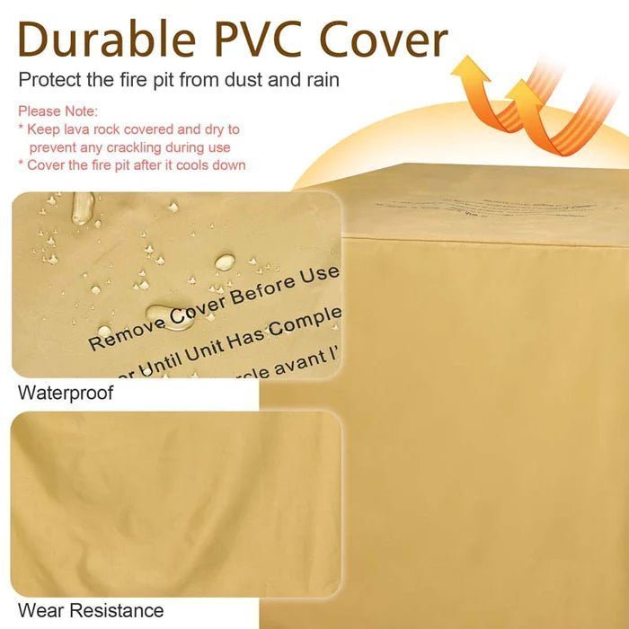 Warm you in this cold winter with our 32 inches gas fire pit table! Once you connect it with a 20 lbs propane tank (not included) and turn on the 50,000 BTU fire pit table, you can get a steady and efficient heating experience. When you sit around this propane fire pit table, you will see the beautiful and adjustable flame with lava stones to bring a warm atmosphere. What’s more, the high-temp resistant tabletop and steel frame as well as the CSA certification ensure safety during use. And there is a waterproof cover to protect the fire pit table from the changing outdoor environment.