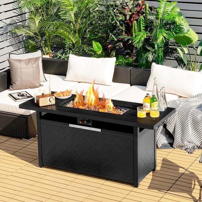 - Easy to Assemble & Maintain: All necessary hardware and clear instructions are included for easy assembly. Besides, the package includes a fire table with a lid and a range of volcanic rocks. The base of this fire pit table cleverly hides a propane tank (not included) for space-saving.