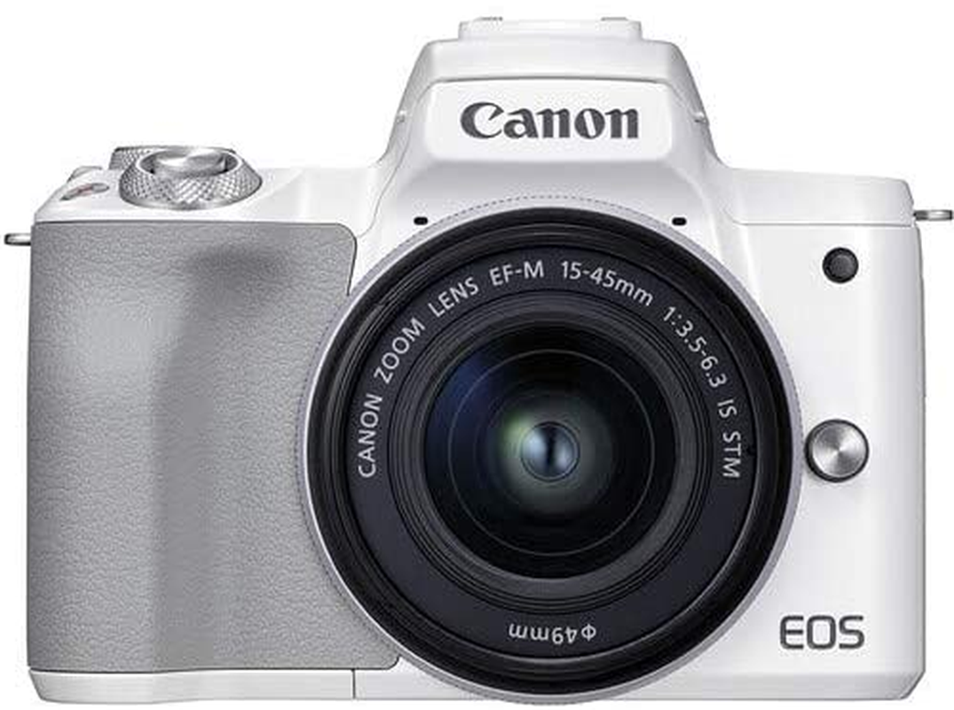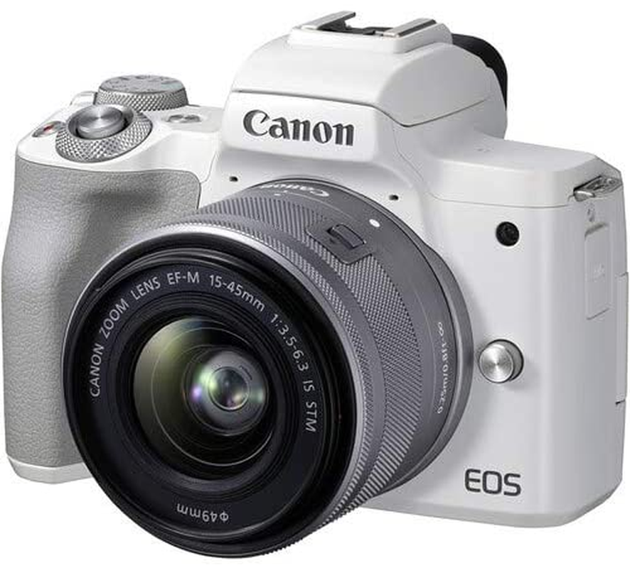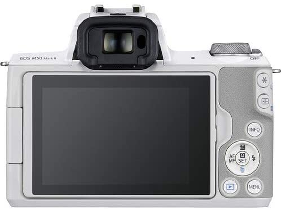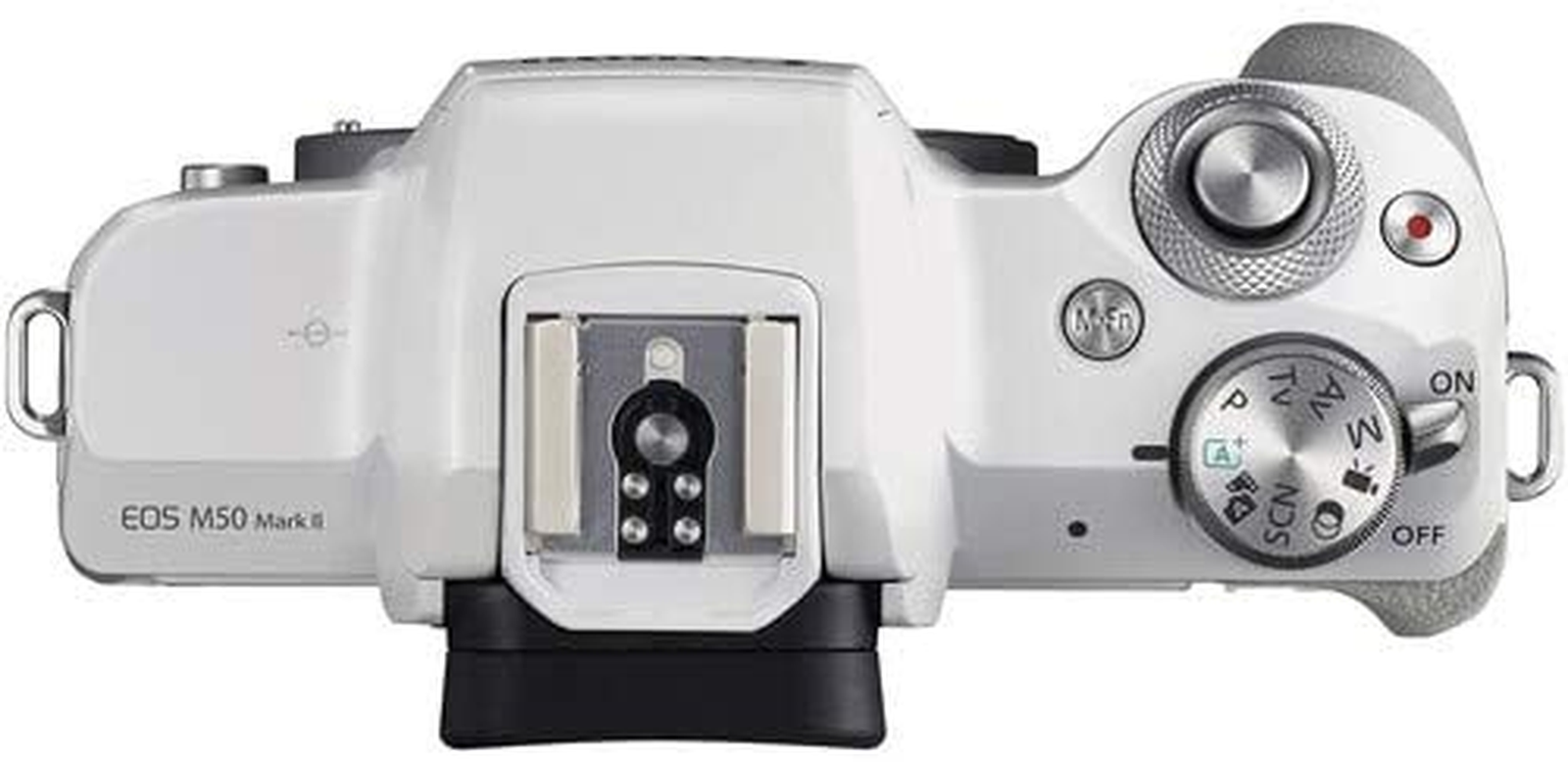 Home CAMERA Canon EOS M50 Mark II Mirrorless Digital Camera (White) with 15-45Mm STM Lens + Deluxe Accessory Bundle Including Sandisk 32GB Card, Flash, Grip Mult