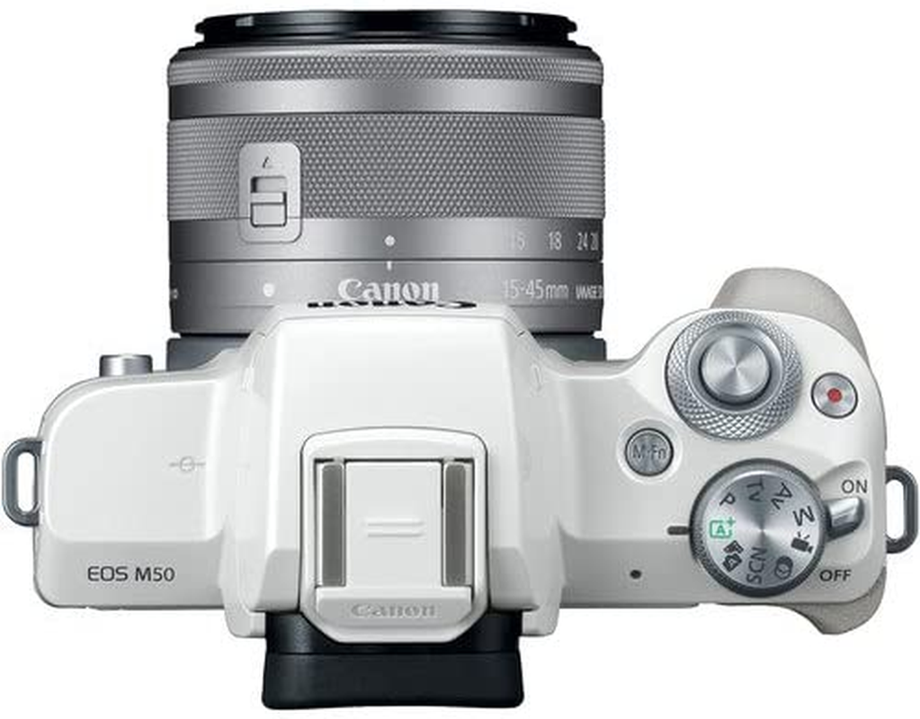 Canon EOS M50 (White) Mirrorless Camera Kit W/Ef-M15-45Mm and 4K Video + Case + 128GB Memory (25Pc Bundle)