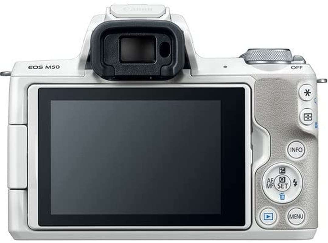 Canon EOS M50 Mirrorless Digital Camera (White) W/Ef-M 15-45Mm F/3.5-6.3 Is STM + Wide-Angle and Telephoto Lenses + Portable Tripod + Memory Card + Deluxe Accessory Bundle