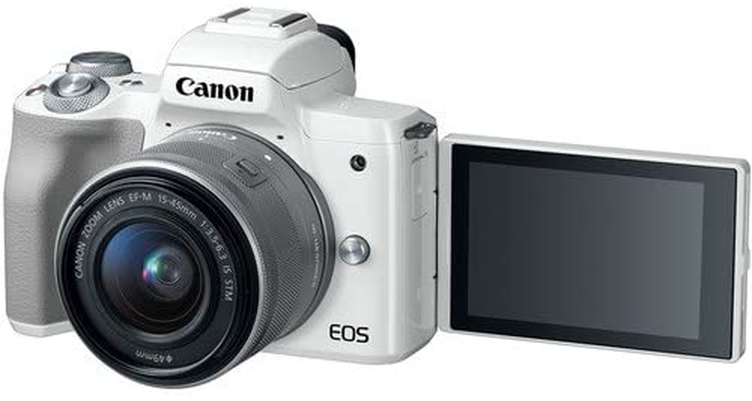 Canon EOS M50 (White) Mirrorless Camera Kit W/Ef-M15-45Mm and 4K Video + Case + 128GB Memory (25Pc Bundle)