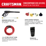 The CRAFTSMAN 3100 PSI at 2.4 GPM gas pressure washer powered by a reliable Craftsman engine provides all the power you need to tackle your cleaning tasks. Four quick-connect spray tips allow you to quickly adjust the spray pattern to best fit the task at hand, a 25-foot flexible hose makes for easy maneuvering, and a detergent tank for simple soap application.