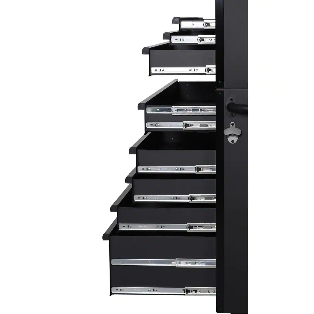 - Full-extension ball bearing drawer slides support up to 120 lbs. and feature soft-close retention system to pull drawers fully closed and ensure they are secured