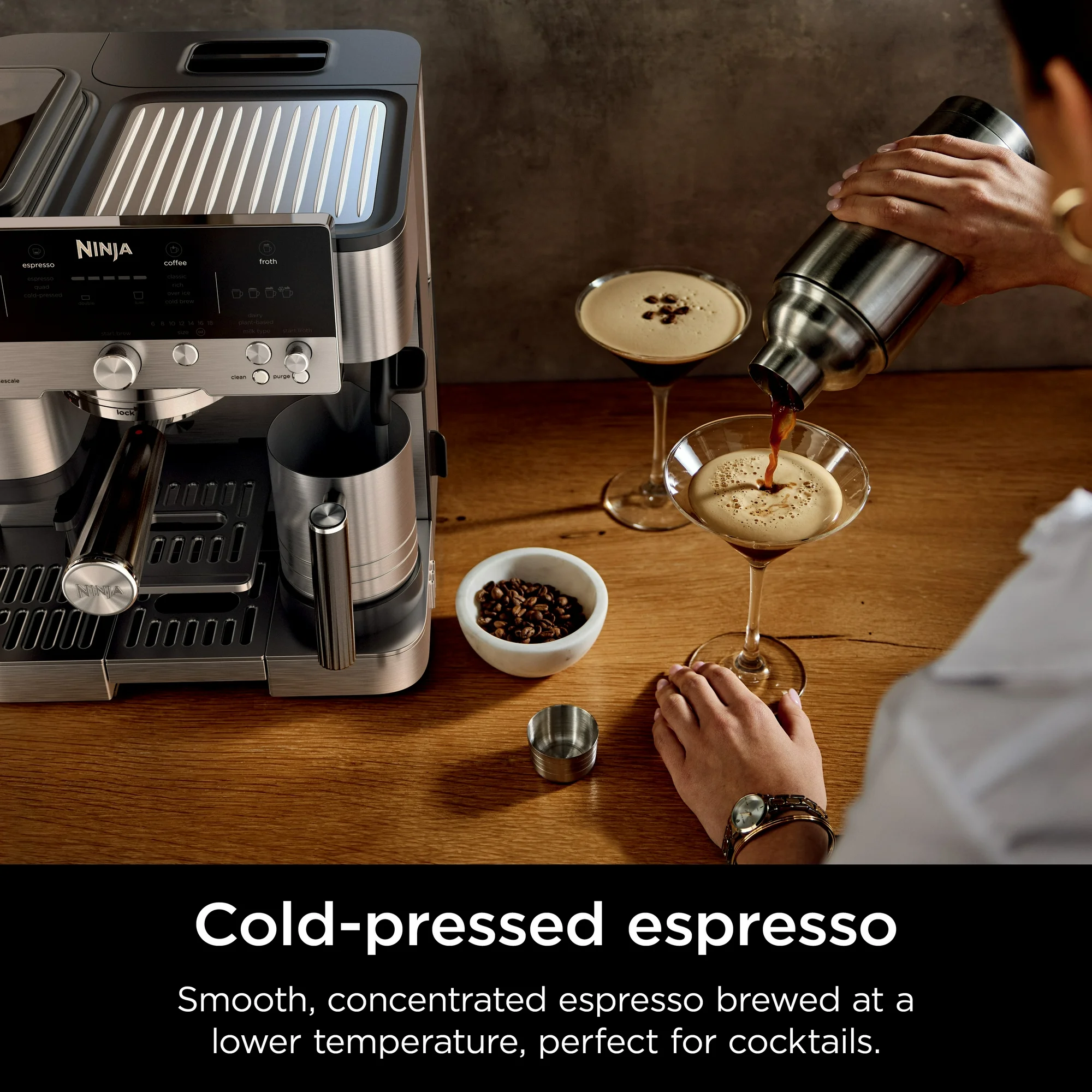 - FLAVORFUL COLD-PRESSED DRINKS: Espresso brewed at lower temperature and pressure, at a slower pace to extract a more flavorful, smooth brew. Perfect for creating a crowd-pleasing espresso martini