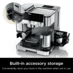 - BUILT-IN STORAGE: Conveniently store the tamper and funnel on the side of the machine when not in use, and keep brew baskets, brush, and cleaning disc in the built-in storage compartment
